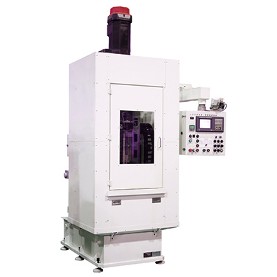 熱処理材のブローチ仕上げ加工用として、製作しました。特殊コーティングを施したハードブローチを使用し、熱処理による熱処理歪みを、高精度かつ安定した加工で仕上げブローチが出来ます。また、切削速度60m/minでの高速加工の為、高能率化と作業性の良い、テーブル移動式構造としております。